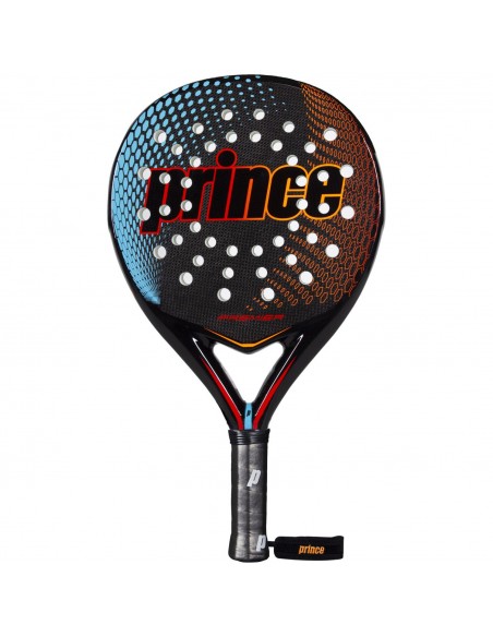 Top performance padel racket with the latest technology developed by Prince to obtain maximum performance. EVA POWER rubber for maximum power. AHS anti-vibration system on the cuff, with polyurethane insert in the core and elastomer on the outside. FTP construction, SHOT SPIN textured face, P-WRISTBAND wristband